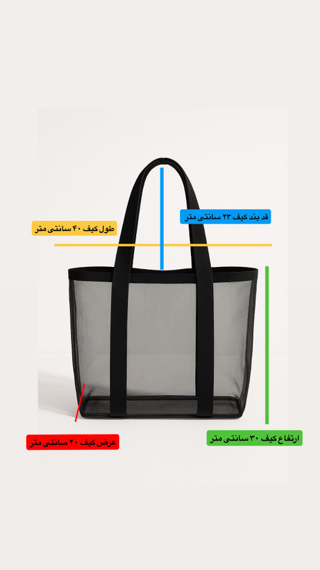 این کیف ساحلی از جنس پارچه تور سبک و مقاوم طراحی شده تا همراه ایدهآلی برای روزهای تابستانی شما در ساحل یا کنار استخر باشد. طراحی جادار و کاربردی آن به شما امکان میدهد تمام وسایل مورد نیاز برای شنا و تفریحات آبی، مانند حوله، لباس شنا، صندل، کرم ضدآفتاب و بطری آب را به راحتی درون آن قرار دهید.
