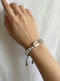 این دستبند دستساز با ترکیب خاص صدف طبیعی و مهرههای سنگی سفید و مشکی طراحی شده و جلوهای ساده اما شیک به استایل شما میدهد. هر قطعه به صورت دستی ساخته شده و همین باعث میشود خاص و منحصربهفرد باشد. این دستبند انتخابی عالی برای استفاده روزمره یا هدیهای متفاوت برای عزیزانتان است.